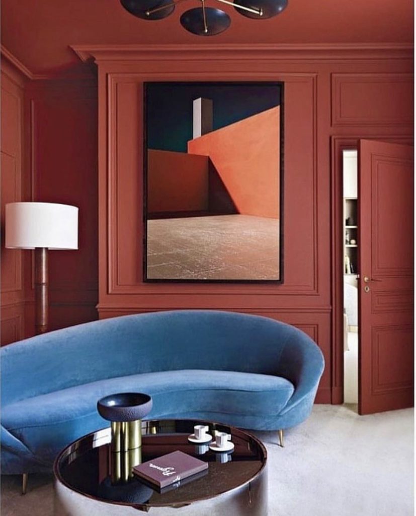For homeowners who want something daring, rich red walls are a showstopper. This design proves how moody and dramatic living room paint colors can be when paired with striking furniture. The red instantly grounds the room, while the deep blue sofa creates a bold contrast. This combination works for ideas with accent wall, especially if you want to set one space apart without overwhelming the entire home. It’s a nod to classic design with a modern twist, making it one of the most stylish ideas 2026 for adventurous decorators.