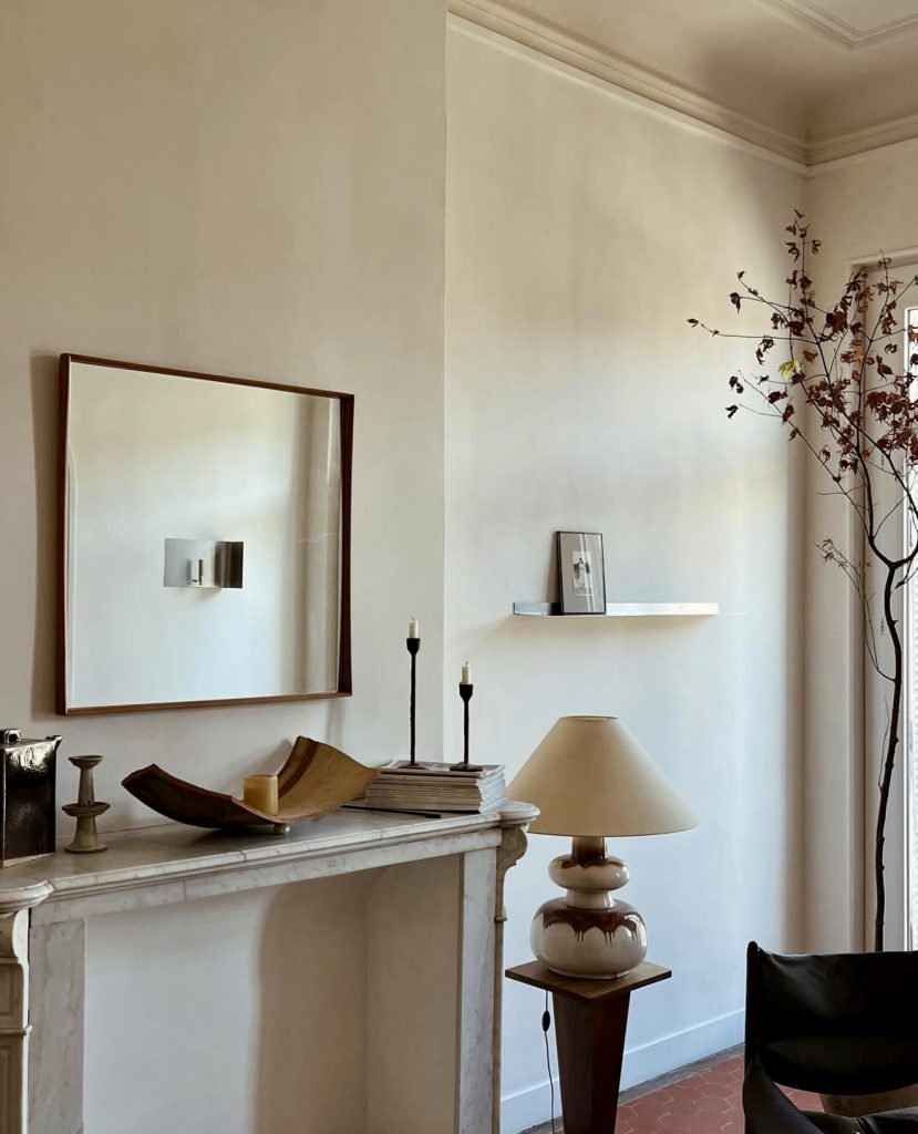 This final mantle strips decor down to the essentials. A marble surround, a few carefully chosen objects, and tall slim candles set the tone for contemporary living. This space proves that mantle decor doesn’t have to be elaborate to feel stylish. A sprig of branches in a vase and a single framed photo are enough to create character. With just a strand of greenery, it could easily become modern fall or elegant Christmas ready, showing how flexibility is the secret to year-round sophistication.