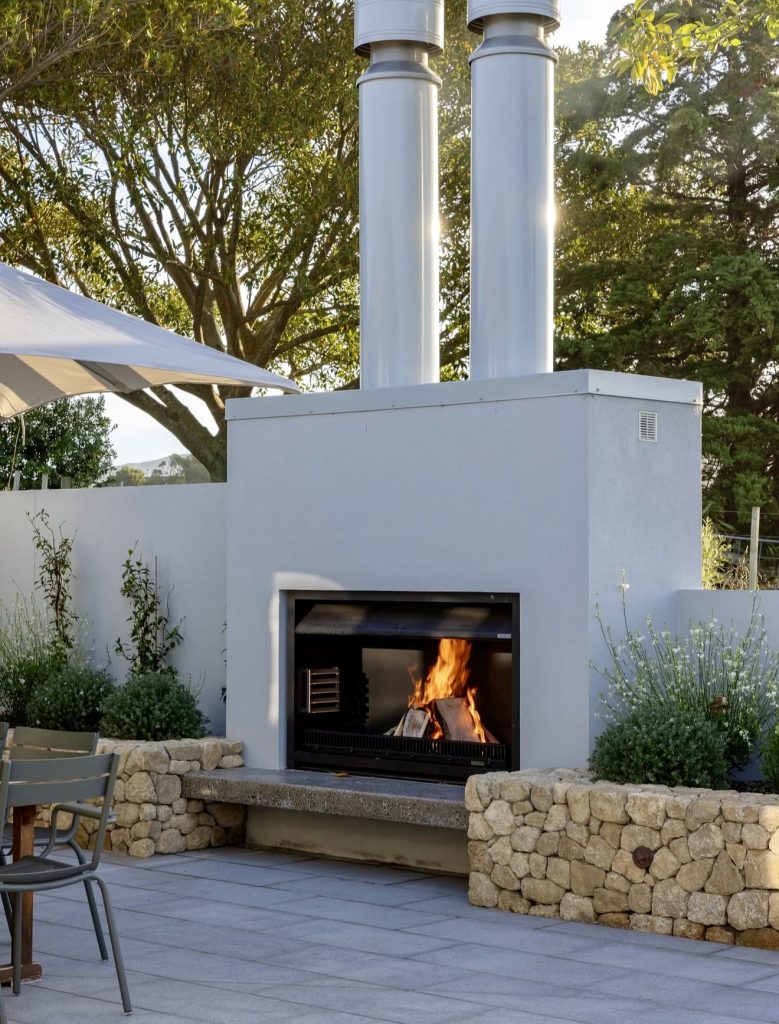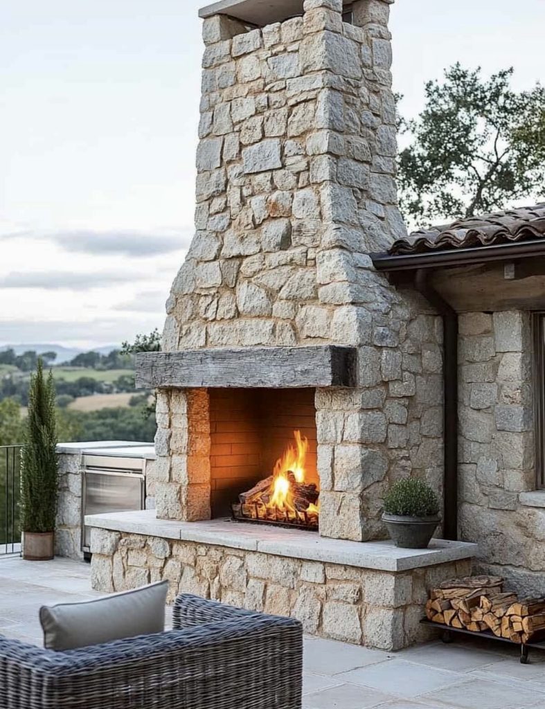 Defined by clean lines and bold vertical chimneys, this fireplace epitomizes modern outdoor living with a contemporary edge. Set against pale stucco walls and framed by natural stone accents, it feels equally at home on a stylish patio or urban terrace. The design is low-maintenance and works beautifully with a gas firebox, but adventurous homeowners could even attempt a diy approach with prefabricated units. It’s an eye-catching feature that makes your backyard look like it belongs in a design magazine.