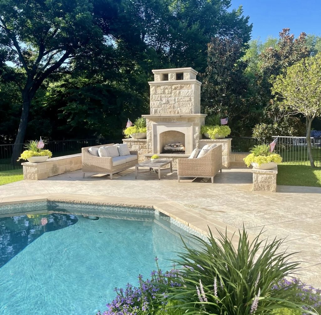 This poolside fireplace shows how stone and classic proportions can elevate leisure spaces into all-season retreats. Surrounded by wicker lounge furniture, it creates a cozy seating area where guests can dry off or sip drinks by the flames after a swim. Its elegant structure blends beautifully with the concrete patio and landscaping, making it both functional and decorative. While designed for backyards wood burning, many homeowners choose gas for cleaner upkeep, and some even pair this style with tv or with pizza oven setups for the ultimate outdoor entertainment hub.