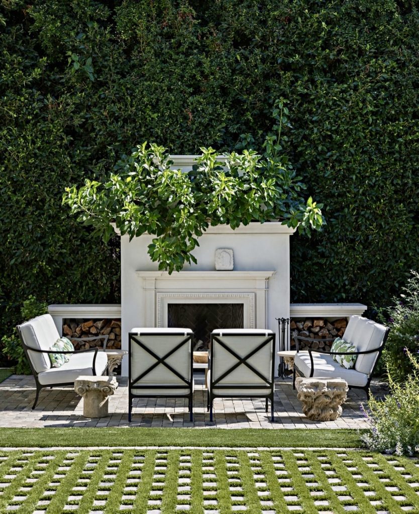 For backyards or terraces with limited space, a compact gas fire bowl paired with built-in seating areas is a smart solution. This modern patio uses geometric pavers to establish structure, while soft, neutral furnishings keep the look breezy and approachable. It’s an ideal setup for diy enthusiasts looking to add warmth without committing to a full brick or stone fireplace build. With strategic plantings and layered textures, even the smallest patio can feel like a stylish escape.