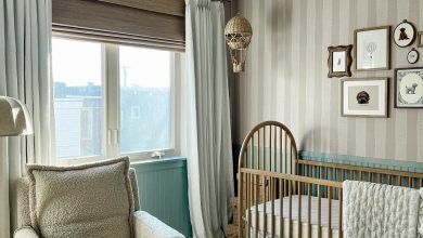 In a room that could be a gallery in its own right, the modern art on the walls is echoed on the floor by a traditional rug with a modern twist. The clean lines of contemporary furniture stand in elegant contrast to the rug’s ornate design, offering a fresh take on the classic grey palette. It’s a space where every detail is curated, right down to the 5×7 rug that grounds the eclectic mix of styles.