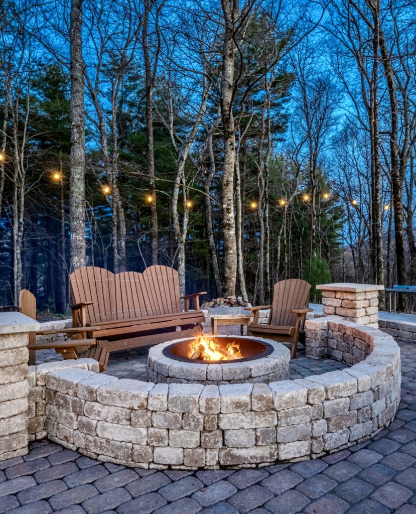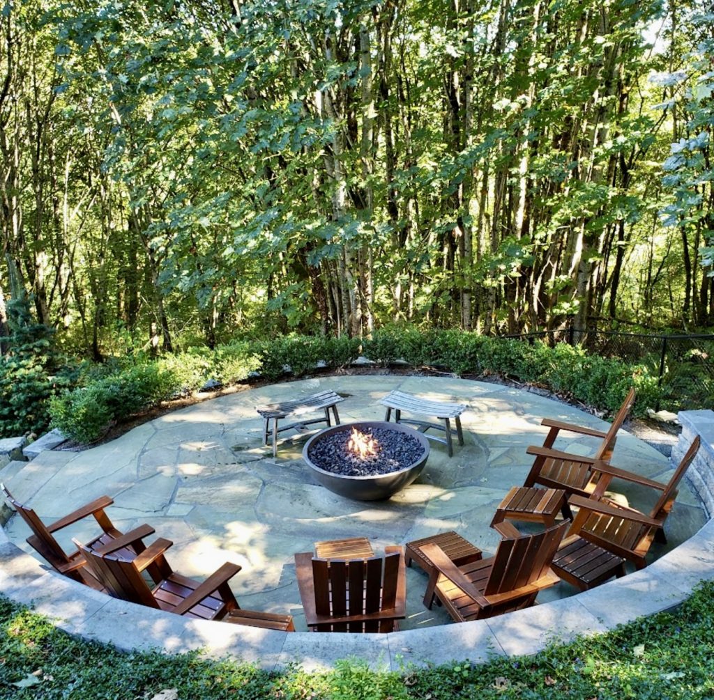 24. Sunken Woodland Patio with Stone Pavers and Fire Bowl