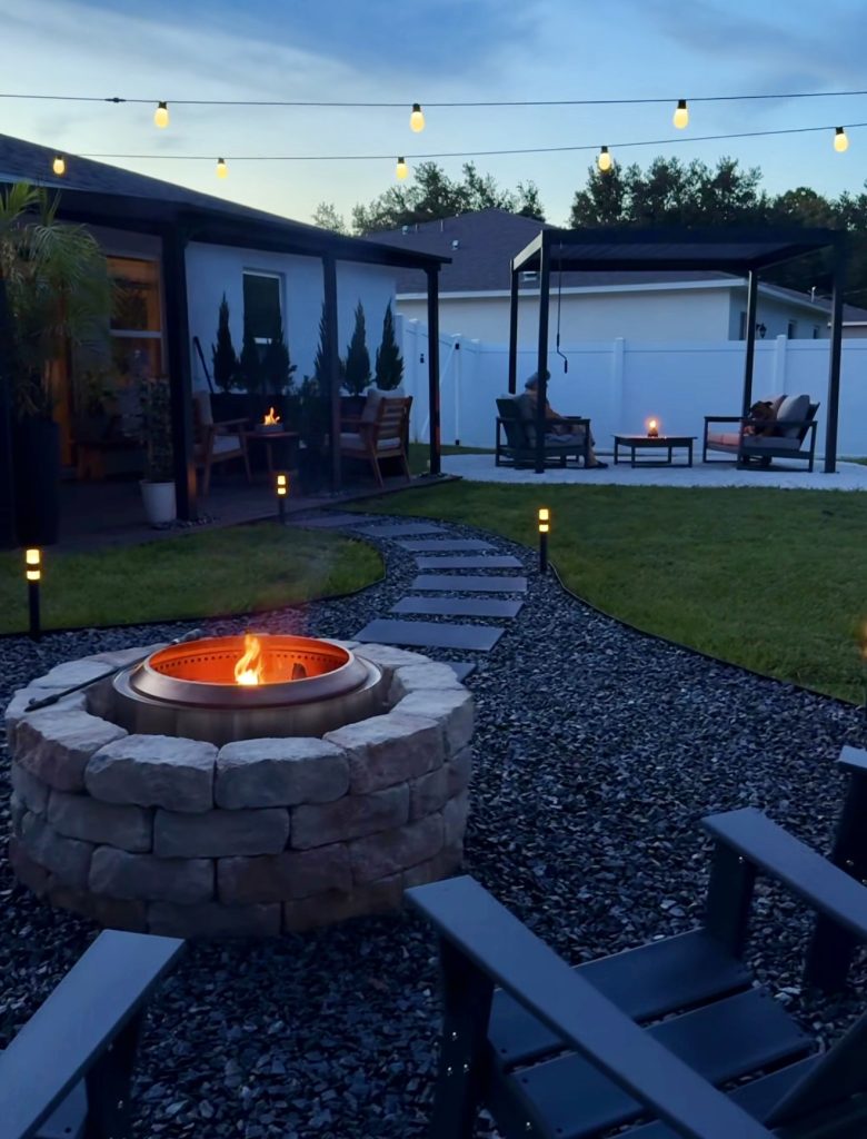 1. Cozy Gravel Fire Circle with Adirondack Chairs