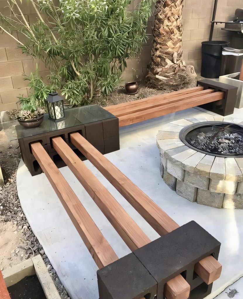 5. Simple DIY Bench and Block Seating Around Stone Fire Pit