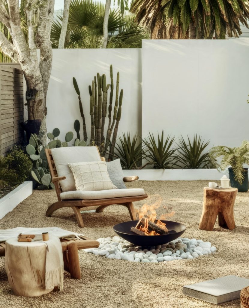 8. Minimalist Desert-Inspired Fire Bowl with Natural Seating