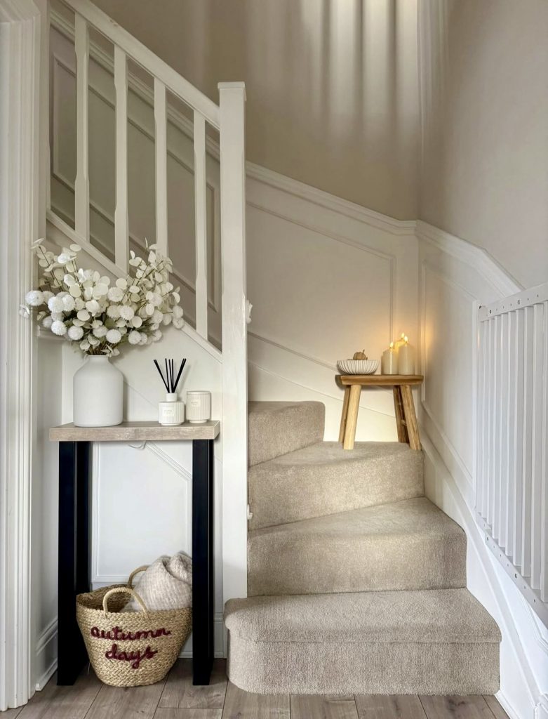 7. Cozy Seasonal Hallway Styling in Soft Neutrals