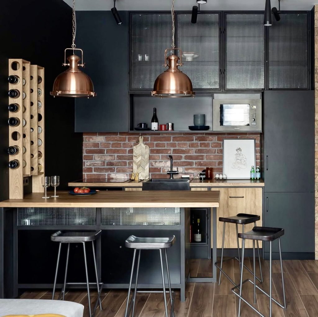 This is one trend that perfectly identifies with the industrial look that incorporates matte black finishes with lifted uncovered bricks that emit expressive definition. The dining area has use of copper that emits refinement, perfecting city décor with modern sophistication that champions artistry. Wooden fixtures provide balanced defining elements that champion modern décor, perfecting living needs. The compact dining area provides practical décor that maximizes counter space, perfecting living needs without overemphasizing compact setup features. This décor exemplifies one that perfectly symbolizes artistry and carefully designed features that capture modernism perfectly.