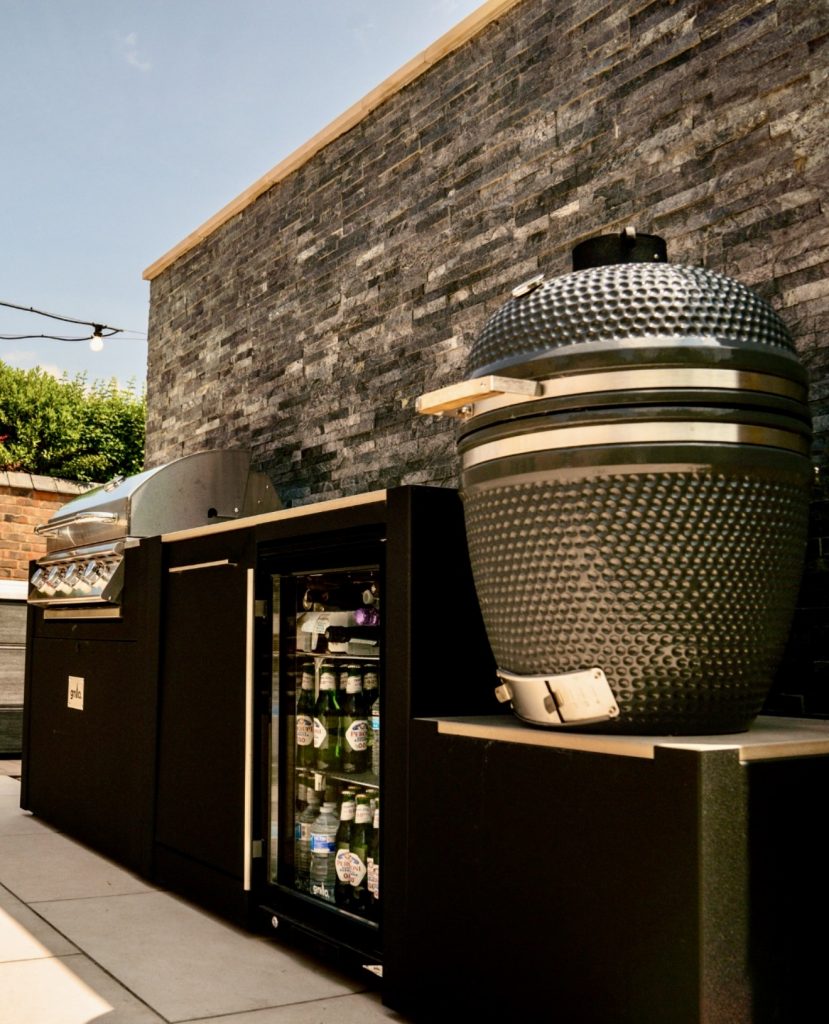 12. Compact Grill and Kamado Setup With Garden Border