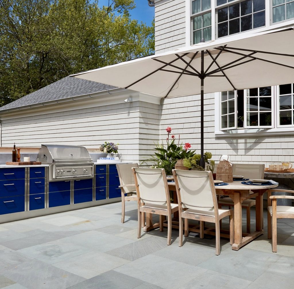 21. Classic Coastal Outdoor Kitchen With Dining Space