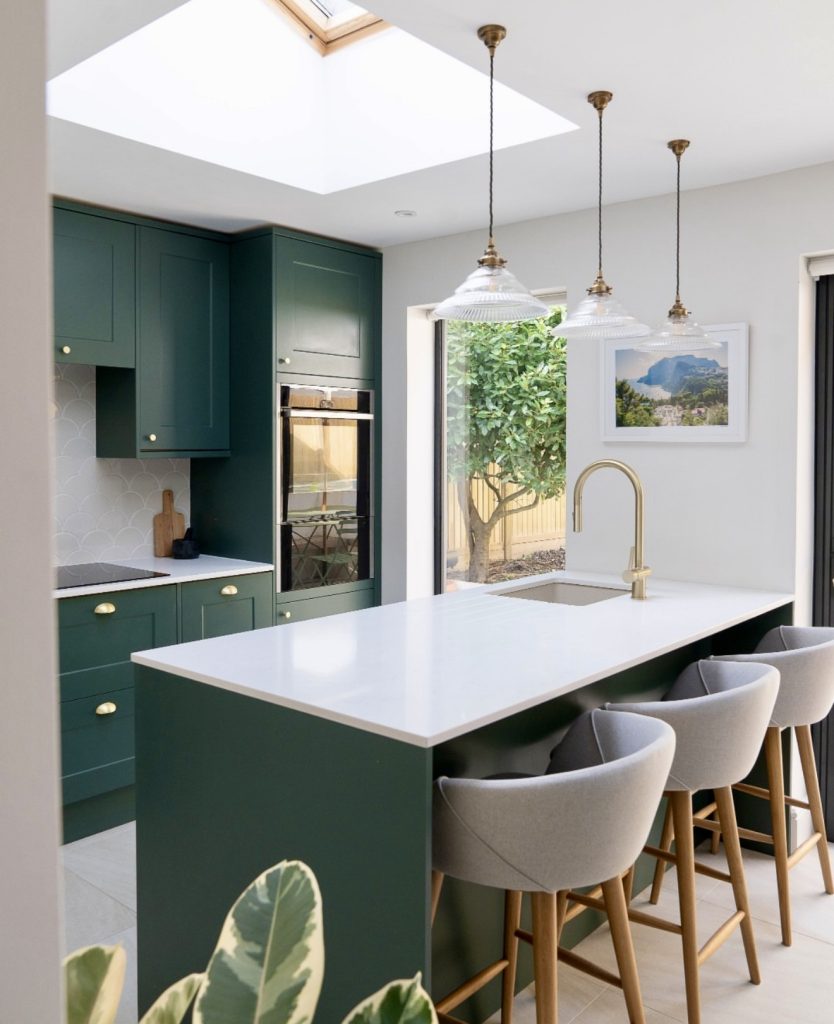 In a designing room like this one that is actually a dream come true for all those people looking for some island ideas in a designing room that is small in size. The deep green cabinets have a touch of brass while a white top is balanced. The central island is designed in a way that serves as a preparation area and a table with chairs. Pendant lights fixed above add a touch to this designing room that has turned out to be a common area. It is one of those kitchens that define a designing room for 2026. It is not a cooking zone but a place for fun.