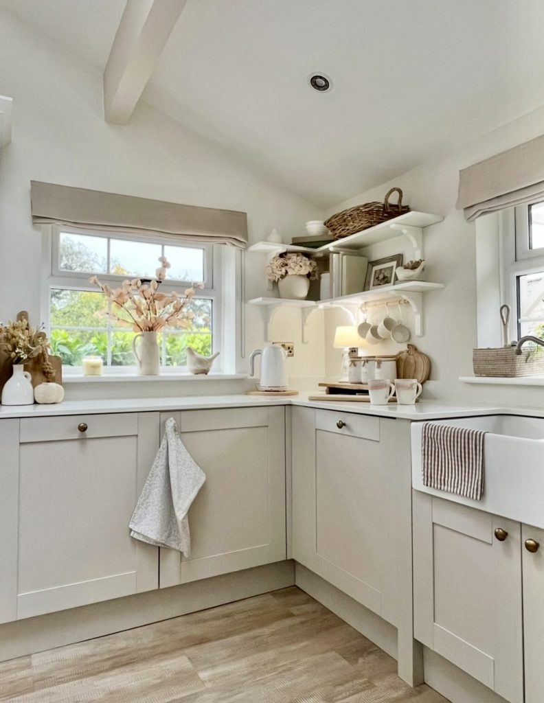 11. Farmhouse-Inspired Small Kitchen with Open Shelving