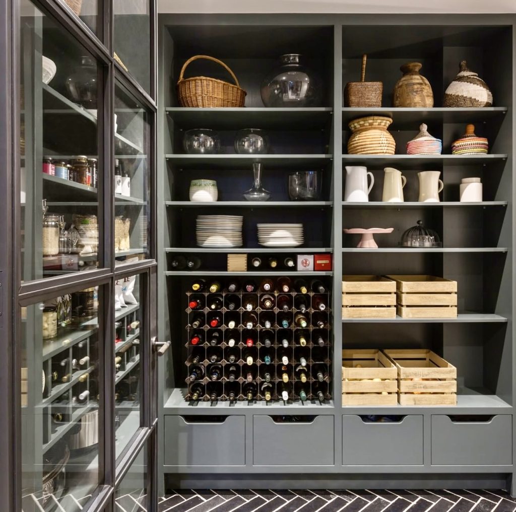 11. Glass-Fronted Wine Pantry With Statement Storage
