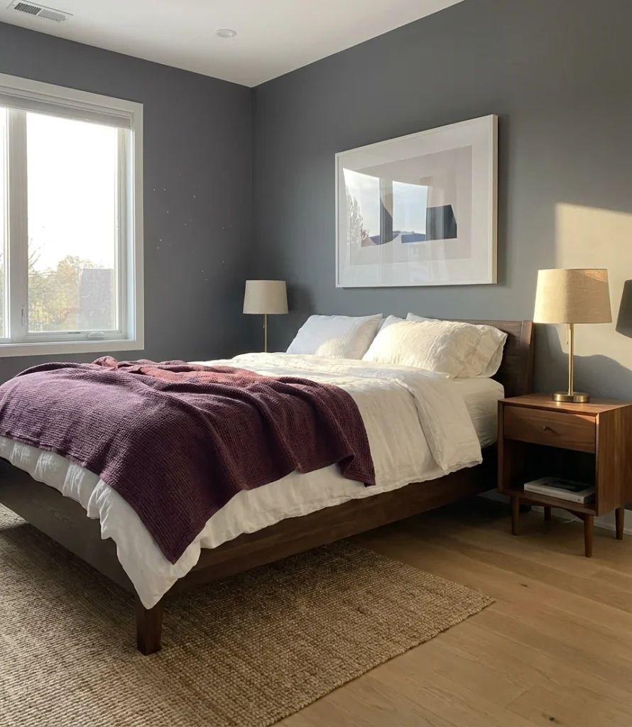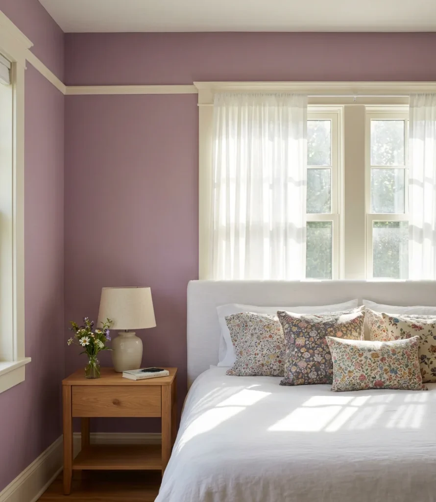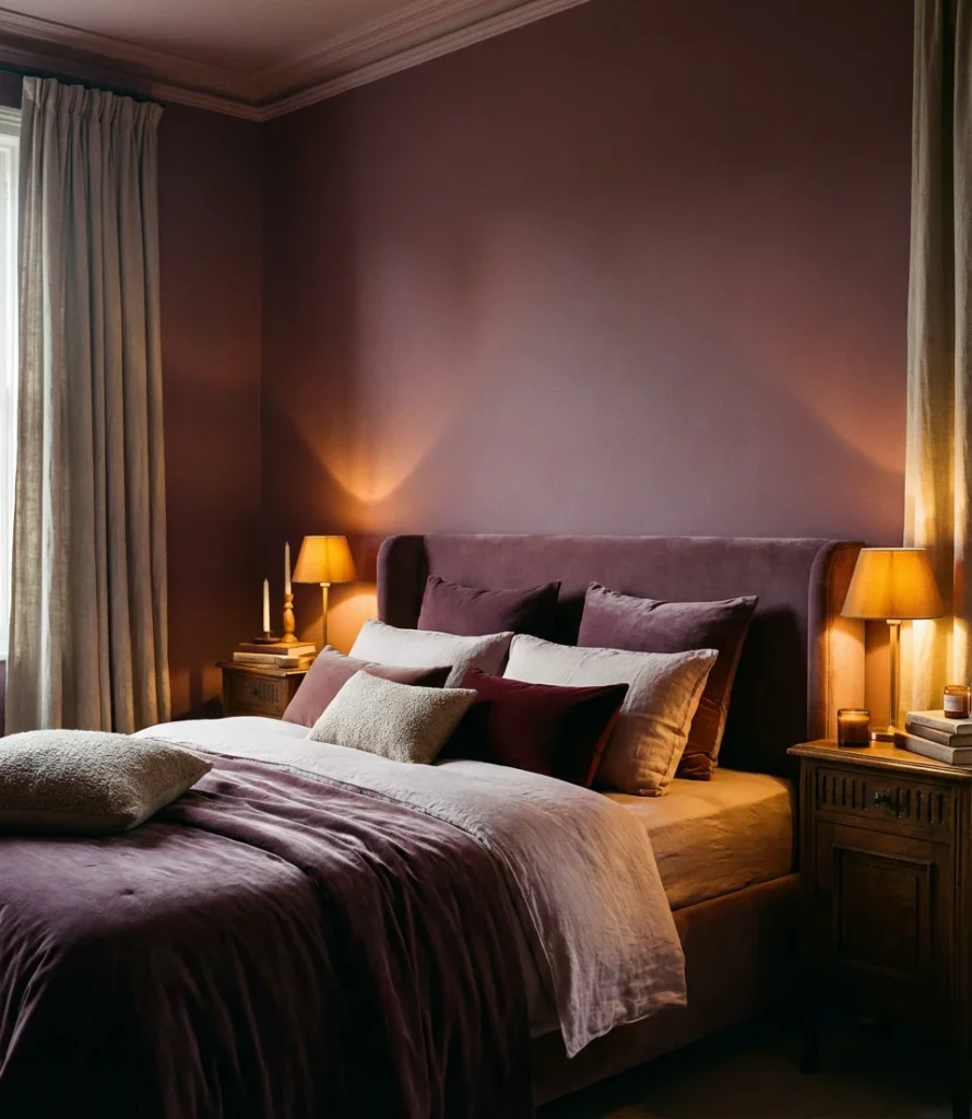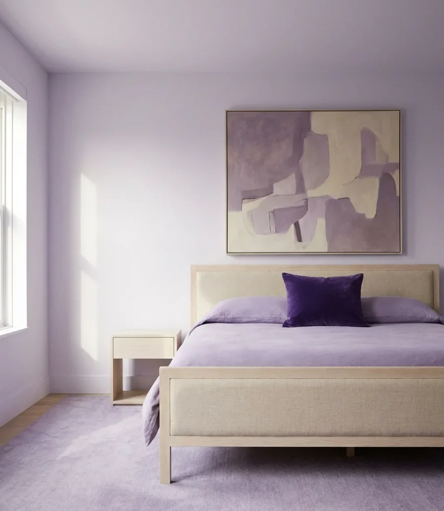 One interior designer who works primarily with urban condos in Chicago described this palette as “the most livable version of purple—it has all the depth and personality of color without ever feeling like a commitment you’ll regret.” Gray-purple walls tend to shift beautifully with the quality of natural light throughout the day, looking almost taupe in the bright morning sun and deeply violet under lamplight. That kind of dynamic quality is exactly what makes a bedroom feel alive rather than static, and it’s incredibly difficult to achieve with true neutrals alone.