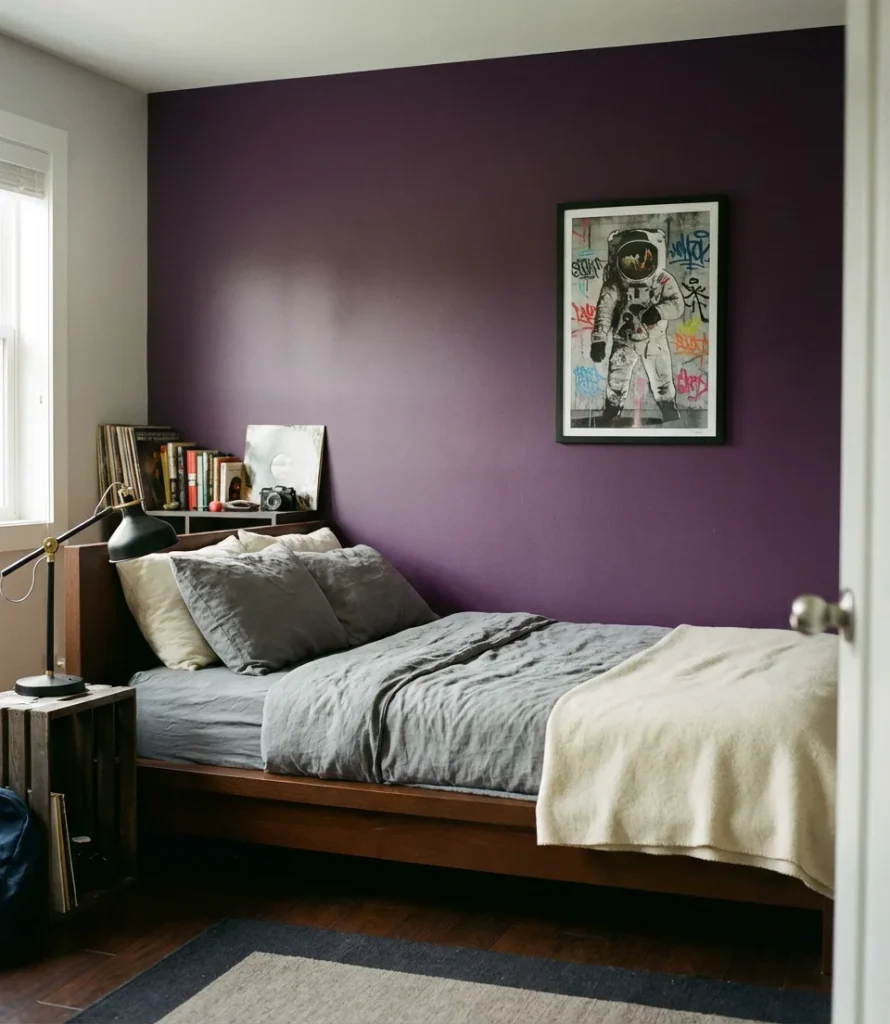 Parents are sometimes surprised by how enthusiastically teen boys respond to this direction when given the chance to explore it. In a survey by one major home decor retailer, purple consistently ranked in the top five most requested bedroom accent colors among teenage boys ages 14–18, ahead of orange and yellow. The key is letting them drive the specific shade—a 16-year-old who chooses deep royal purple for his room and pairs it with his own art and furniture will take far more ownership of the space than one who received a conventionally “masculine” navy blue by default.