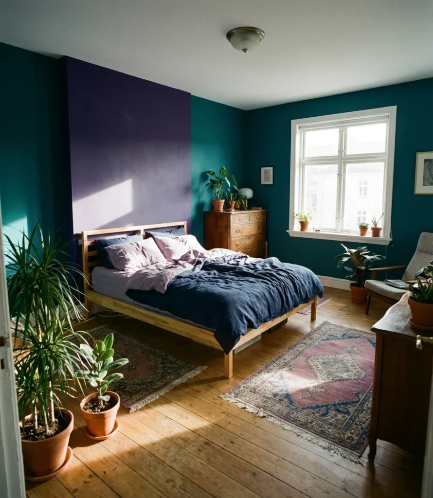 7. Purple and Teal Bedroom—Bold Color Pairing Done Right