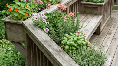 The most common mistake here is getting the spacing wrong, which can result in too many plants crowding your dining area in a single growing season. Maintain an 18-24 inch gap around the edges of your seating zones and choose your plants carefully, so you don’t end up with thorny roses close to the chairs or bee-attracting plants directly overhead. Lavender and sage are both good choices; sage is slightly fragrant and active but does not attract bugs to your food.