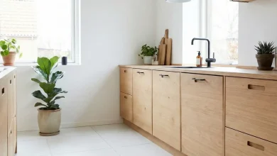 Light oak brings a Scandinavian-inspired warmth to kitchens, offering the beauty of natural wood grain without the heaviness of darker stains. Its pale honey tones complement almost any color palette and pair effortlessly with white countertops, subway tiles, and stainless appliances for a fresh, timeless look. When you add minimalist hardware—think slim bar pulls or discreet edge pulls—the focus stays on the wood’s texture and the overall simplicity of the design. This approach works especially well in open-plan homes where the kitchen is part of a larger living space, creating a cohesive, uncluttered aesthetic that flows from room to room.