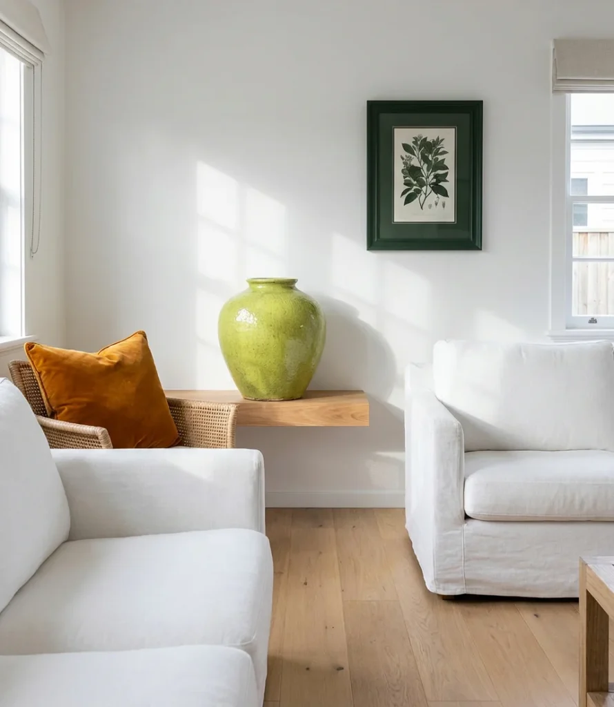 This strategy is particularly smart for renters or homeowners who know they’ll want to change things up seasonally. Swapping out two or three objects can completely repaint the mood of the room without any actual paint involved. It’s also the approach most commonly used by professional home stagers who need to make a space feel memorable on a tight timeline. The key is restraint—two or three pops maximum, chosen deliberately, create far more impact than a scattered rainbow approach.