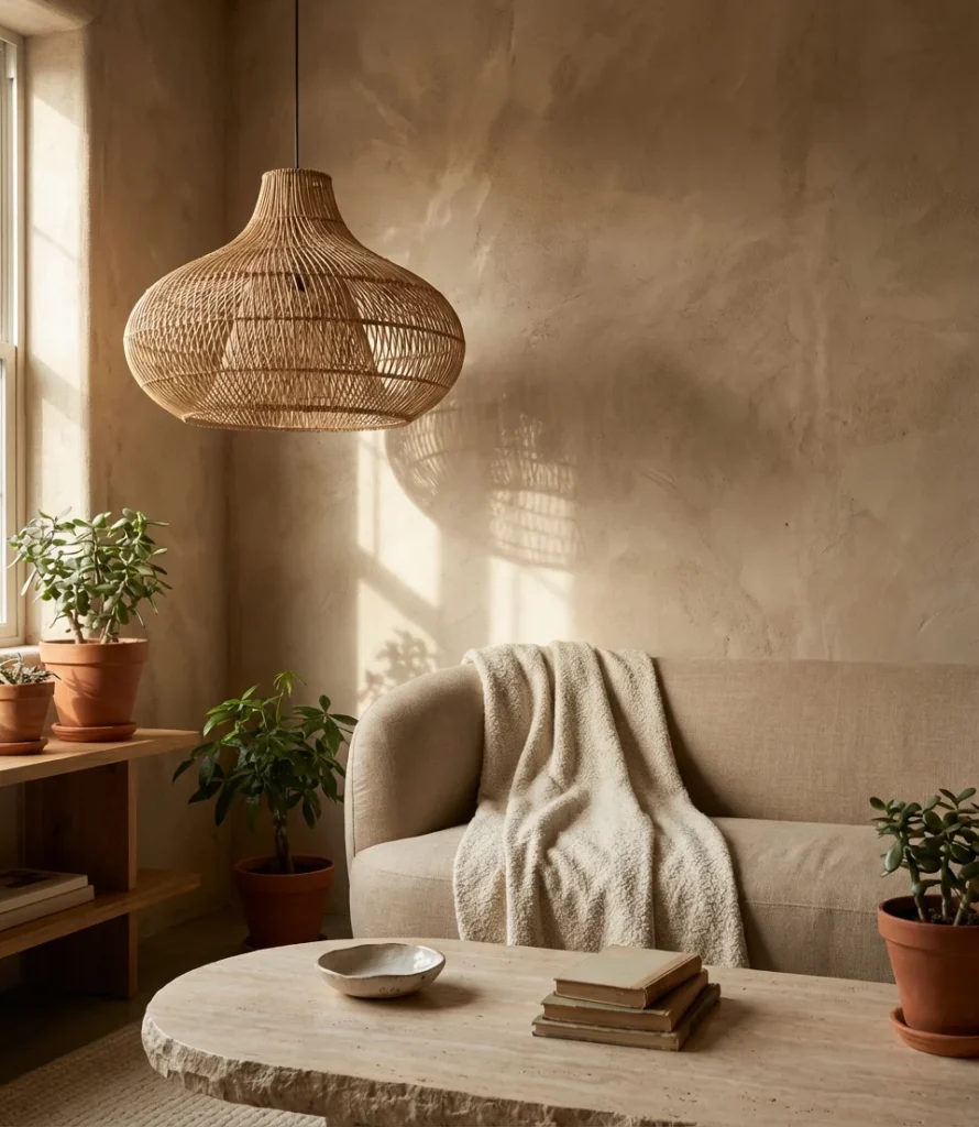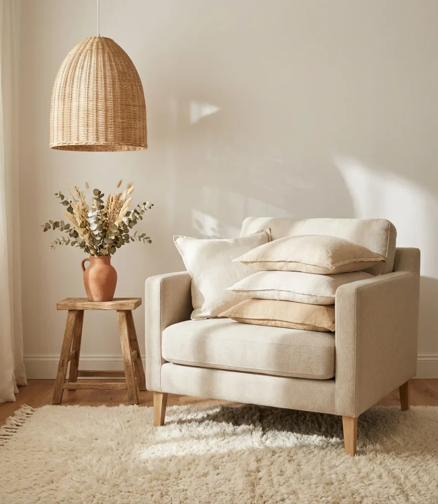 Natural materials meet neutral color in the organic modern aesthetic—one of the fastest-growing interior design movements among American homeowners in 2026. Organic modern prioritizes raw linen, hand-thrown ceramics, sculptural wood pieces, and undyed textiles. The color palette draws from the natural world: bone, driftwood, warm stone, and raw sisal. It reads as effortless, but every piece is deliberately chosen.