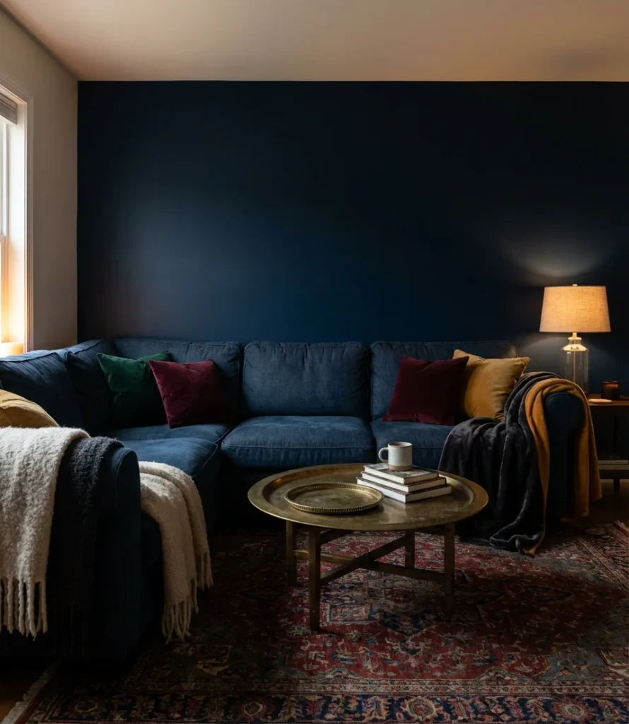 There’s something undeniably sophisticated about a moody, deeply saturated navy living room. This isn’t the timid, pale blue of a beach cottage—this is a commitment to depth, drama, and atmosphere. Dark walls in a living room used to feel risky, but designers and homeowners alike have embraced the envelope-pushing shift, especially in north-facing rooms where natural light is already limited and you might as well lean into the drama.