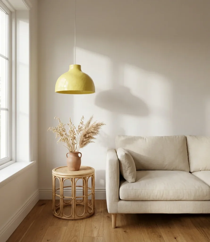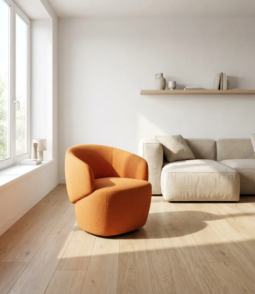 When the pop in question is a citrus tone, such as tangerine, lemon yellow, or fresh lime, the neutral with a pop approach becomes particularly captivating. A single citrus-colored piece, set against a backdrop of warm whites and natural linen, commands the entire room, akin to a punctuation mark at the end of a carefully constructed sentence. This style is the living room equivalent of a great pair of statement earrings—the rest of the look is quiet, and that one thing says everything.