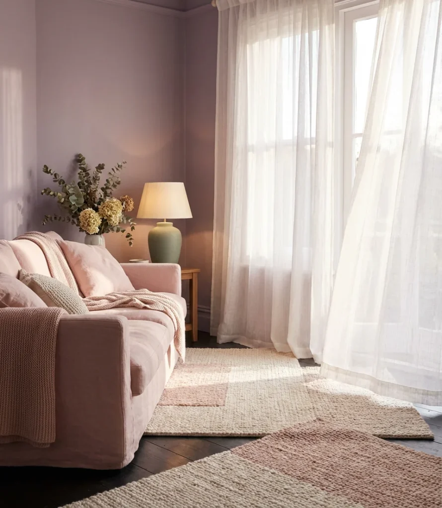 Pastel rooms photograph exceptionally well in natural light, which explains their continued dominance on Pinterest and Instagram. The key to keeping a pastel room from feeling flat is texture: think bouclé, woven baskets, linen drapes, and handmade ceramics. Where it works best: south-facing rooms with abundant light, where soft hues won’t wash out under flat overcast skies. Avoid pastels in north-facing rooms, where they can read as murky.