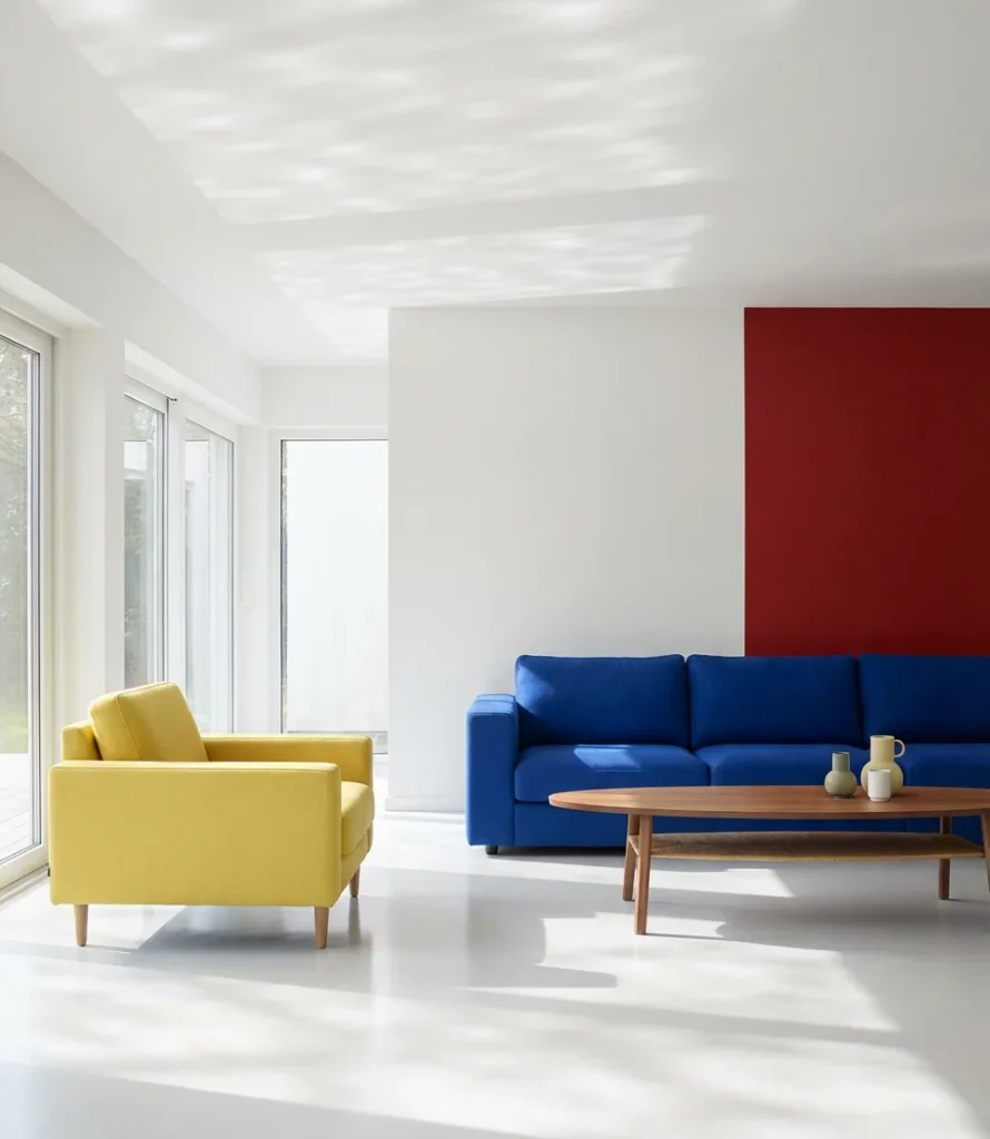 When executed with precision, true primary color blocking in a living room can yield extraordinary results. Think of the Mondrian influence filtered through a contemporary residential lens: red, blue, and yellow deployed in deliberate geometric sections—painted wall panels, upholstery choices, and area rugs working in concert to create a living space that feels like a work of art.