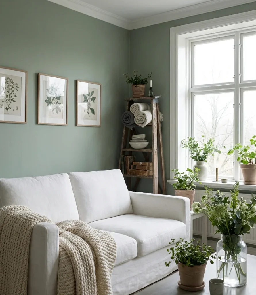 White slipcover sofas have seen a massive resurgence, especially among younger homeowners who appreciate both the clean look and the machine-washable convenience. One homeowner in Austin shared that the sage-and-white combo made her 900-square-foot apartment feel like a treehouse—grounded and bright at the same time. For the walls, look at Behr’s “Seawashed” or Farrow & Ball’s “Mizzle” as starting points for a muted, sophisticated sage.