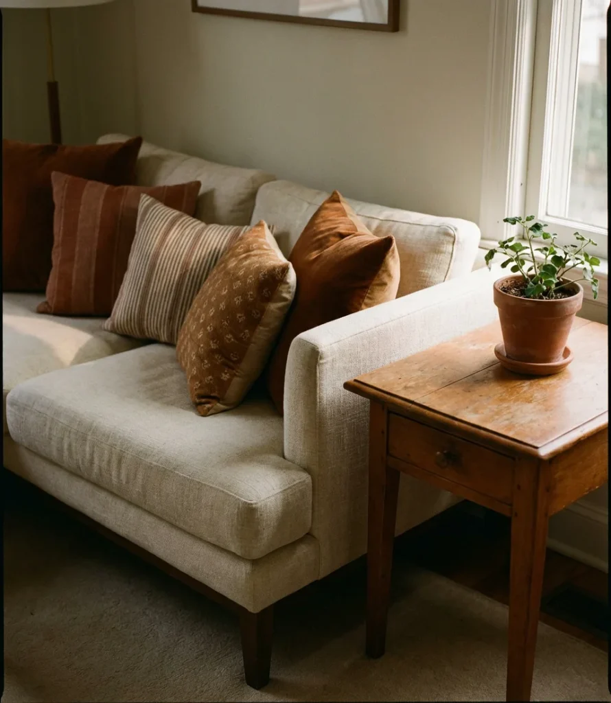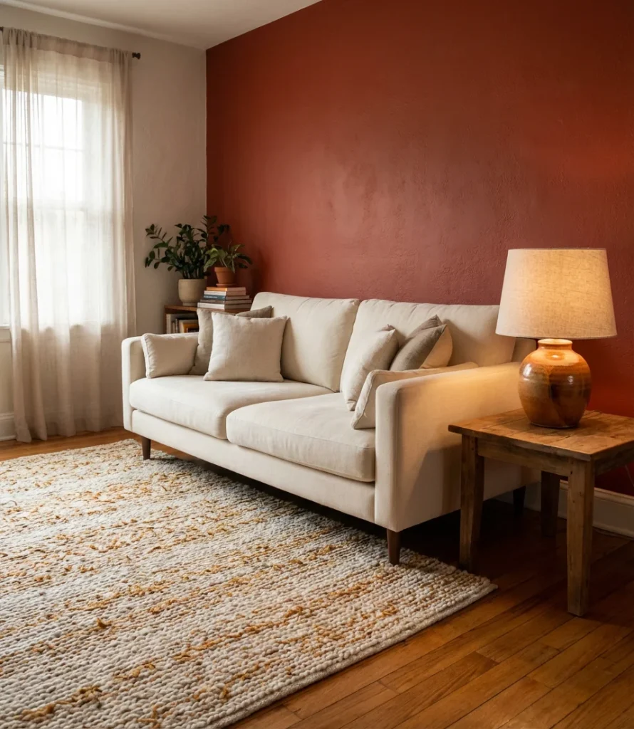 This palette is particularly forgiving for homeowners who are still building their furniture collection. Because rust and cream are both deeply rooted in warm neutral territory, almost everything looks appealing against them—wood tones, metals, plants, and patterns all integrate easily without creating visual conflict. It’s a palette that grows with you rather than boxing you in, which makes it especially popular among first-time homeowners who are furnishing gradually over several years.