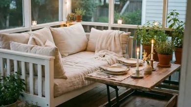 Creating inviting backyard and small back porch spaces doesn’t require significant investment when you focus on smart priorities. Start with a quality outdoor rug to define the space, add affordable resin wicker furniture with weather-resistant cushions, and incorporate budget-friendly solar lighting. This on-a-budget approach prioritizes comfort and functionality over expensive built-ins, allowing you to create a private retreat where you can unwind after work or host intimate weekend gatherings.