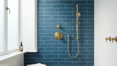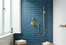 A blue tile feature wall brings ocean-inspired tranquility without overwhelming the space, especially when you limit the color to one surface and keep surrounding walls neutral. Shades from soft aqua to deep navy work in bathrooms of any size, with lighter tones expanding small spaces and saturated hues creating focal points in larger layouts. Pairing blue tile with natural wood elements or brushed brass fixtures enhances the organic, beachy feel.