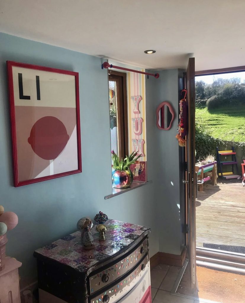 Not every hallway has to be neutral—and this one proves it with flair. A joyful mix of pastel blue, red accents, and eclectic art makes this entry impossible to forget. It feels like a creative’s dream, a place where bold colors meet nostalgia. The painted dresser and playful “YUM” lettering channel the carefree spirit of Whoville, offering a fun take on personal expression at home. It’s an inspiring reminder that hallway decorating in 2026 isn’t just about trends—it’s about creating joy in everyday spaces.