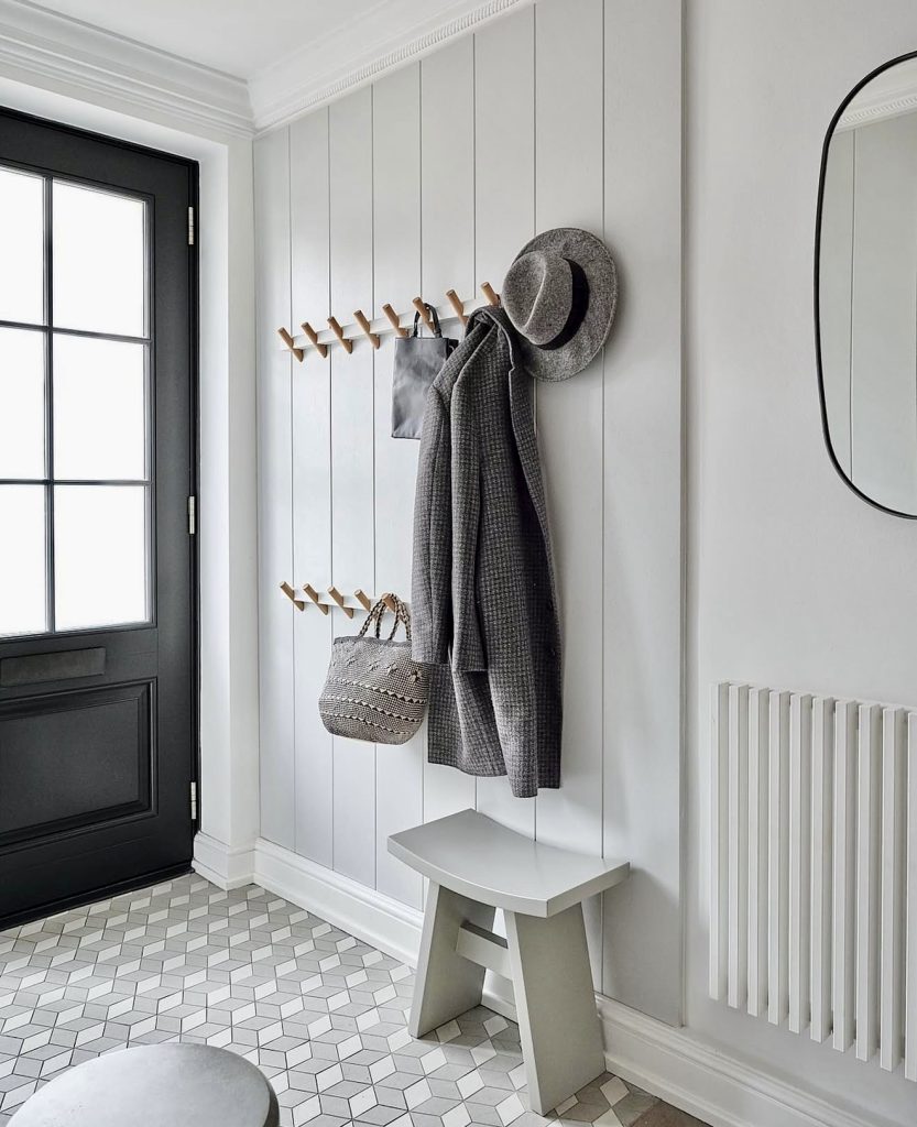 This compact entry celebrates the minimalist spirit of Nordic interiors. Pale wood tones, clean lines, and a touch of geometric flooring turn a narrow hallway into a functional work of art. Every hook, bench, and coat placement is intentional, balancing practicality with understated beauty. The design feels bright and airy even on short winter days, and a muted palette keeps the space feeling uncluttered. It’s proof that simplicity doesn’t have to mean boring—it can mean beautifully thought-out living for a modern home.