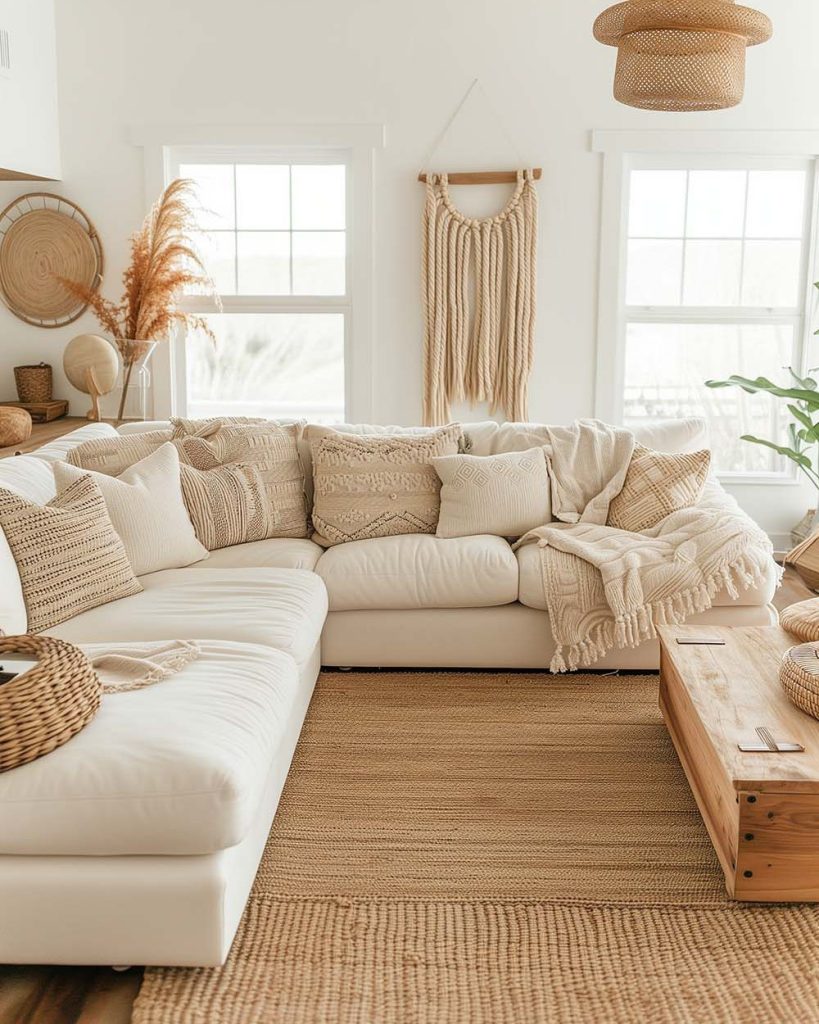 The bohemian style blossoms beautifully into 2026 trends with a warm and cozy texture emphasis paired with tone-on-tone layering. This room’s knitted baskets, macramé wall hangings, and knitted throws contribute tactile depth, while sand and cream’s neutral palette maintains minimalness and tranquility. The decor combines relaxation with handmade craftsmanship, echoing modern luxury with a handmade spirit. It’s a quintessential illustration of small spaces becoming larger with meaningful layering and lightness—proof that sophistication and comfort can coexist in a snug home.